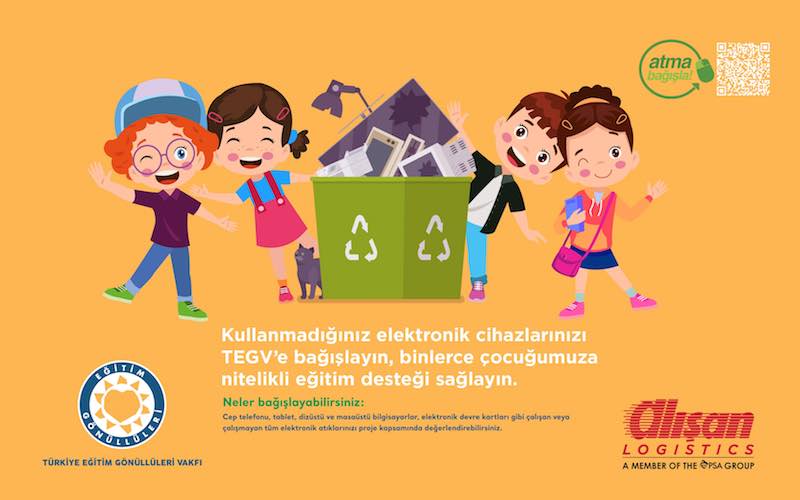Yayınladığı sürdürülebilirlik raporu ile beraber çevre konularındaki projelerine hız veren ve eğitime desteği de sürdüren Alışan Lojistik son olarak, Türkiye Eğitim Gönüllüleri Vakfı’nın (TEGV) “Atma Bağışla Projesi” ne tüm çalışanları ve aileleri ile beraber destek olma kararı aldı. Alışan, e-atık olarak nitelendirilen ve kullanım ömrünü tamamlayarak çalışmayan ya da kullanıcısı tarafından artık kullanılmak istenmeyen bilgisayarlar, televizyonlar, cep telefonları, faks makineleri, yazıcılar, CD çalarlar gibi elektronik eşyaların geri dönüşüme bağışlanması ile elde edilecek gelirden daha fazla çocuğun nitelikli eğitimle buluşmasına destek sunacak.