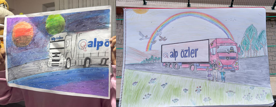 Projeye katılan çocuklar, Alp Özler araçlarını ve çalışanlarını kimi zaman uzayda yıldızların arasında, kimi zaman gökkuşağının altında, kimi zaman da dağların arasından geçerken resmetti. Bazı resimlerde rüzgar enerjisi taşıyan tırlar, bazılarında ise işe uğurlanan bir baba ve onu bekleyen bir aile yer aldı. Her bir çizim, çocukların gözünde işin yalnızca bir meslek değil, aynı zamanda bir kahramanlık hikayesi olduğunu ortaya koydu.