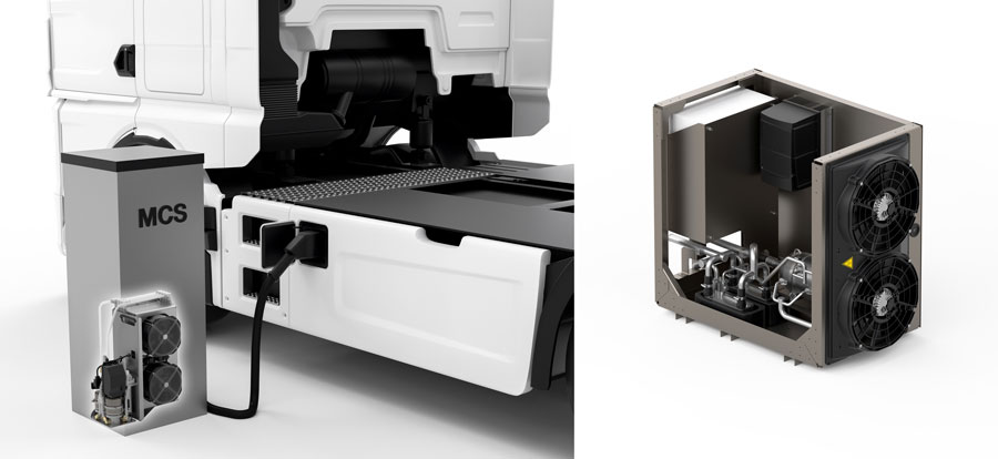 “We can easily transfer the knowledge of cooling modules we have gathered in the transportation sector to stationary battery storage system in containers,” said Christian Kuechlin, Vice President MAHLE Industrial Thermal Systems. “Since the space in the container is mainly to be used for battery stacks, MAHLE develops space saving, compact and efficient cooling solutions in line with customer requirements.”