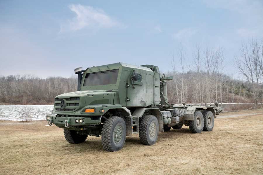 Mercedes-Benz Special Trucks, dört dingilli ve tüm tekerlerden çekişli (8×8) Zetros arazi kamyonunu 2025’ten itibaren iki farklı sürümle satışa sunacak. Böylece Zetros iki dingilliden dört dingilli modele kadar çeşitli konfigürasyonlarda satışa sunulacak. Mercedes-Benz Special Trucks’ın Eurosatory‘de sergileyeceği Zetros 8×8, Kanada Savunma Bakanlığı’nın önümüzdeki birkaç yıl içinde 1500’den fazla Zetros aracının teslim edilmesini öngören büyük bir siparişinin sonucu. Mercedes-Benz Special Trucks ayrıca Eurosatory’de zırhlı kabinli bir Zetros’u da tanıtacak. Artık zırhlı kabinli bir araç doğrudan Wörth fabrikasından teslim edilebiliyor. Diğer yandan Mercedes-Benz Special Trucks, 4×4’ten 8×8’e kadar yüksek arazi kabiliyetli Zetros‘un tüm ürün yelpazesini zırhlı kabinli ve zırhsız kabinli olarak tek kaynaktan sunabilecek. Eurosatory’de Mercedes-Benz Special Trucks standını ziyaret edenler ayrıca askeri kullanıma yönelik başka araçlar da bulacaklar: asker taşıyıcı olarak düz kasalı ve brandalı bir Unimog U5000, zırhlı çekici olarak çift vinçli bir Arocs 6×6, bir Zetros 4×4 ve zırhlı personel taşıyıcıları (ZPT) için taktik şasi olarak değişken FGA şasi.