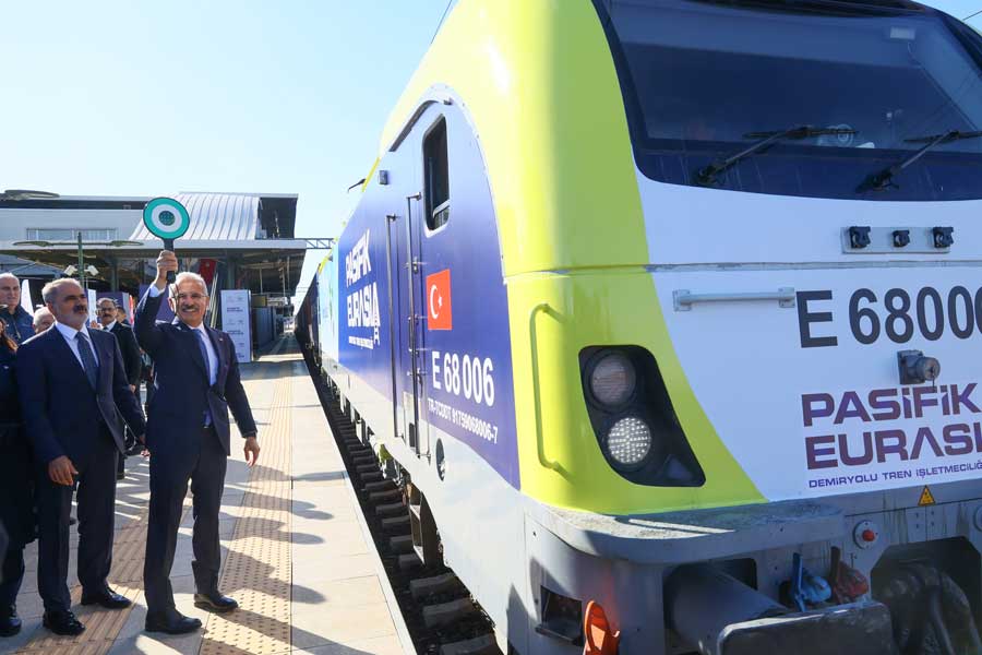 2023 yılında Çin-Avrupa arasında gerçekleşen 9 bin 340 tren seferi ve Avrupa – Çin arasında gerçekleşen 8 bin 180 tren seferi ile 1,9 milyon TEU yük taşındığına dikkat çeken Bakan Abdulkadir Uraloğlu, şunları söyledi: “Bu noktada Asya ve Avrupa arasında köprü görevi gören ülkemizin coğrafi konumunun sağladığı fırsatların ekonomik ve ticari avantajlara dönüşebilmesi için demiryollarında yeni bir çağ başlattık. Bu kapsamda bu taşımalardan daha çok pay alabilmek için 30 Ekim 2017’de faaliyete başlayan Bakü – Tiflis – Kars Demiryolu Hattı demiryolu taşımacılığına yeni bir yön verdi. Çin-Türkiye arasında yaklaşık 8 bin 693 kilometrelik mesafe dikkate alındığında bu hat üzerinden konteynerler Çin’den Türkiye’ye 12 günde, Marmaray Tüp Geçiti’ni de kullanarak Çin’den Avrupa’ya ise 18 günde ulaşıyor. Çin-Türkiye-Avrupa arasında ilk tren 2019 yılı Ekim ayında Çin’den yola çıkıp, Çekya’nın Prag şehrine 18 günde ulaşmıştır. Bu ilk transit tren sonrasında Türkiye-Çin arasında blok tren konteyner taşımaları ülkemizin farklı noktalarından devam etmektedir. BTK demiryolu hattı kullanılarak açılışından bugüne kadar toplam 67.281 TEU ve konvansiyonel taşımalar da dahil olmak üzere toplam 1 milyon 502 bin tonun üstünde yük taşınmıştır. Bu miktarların önümüzdeki süreçte daha da artacağına inanıyoruz.